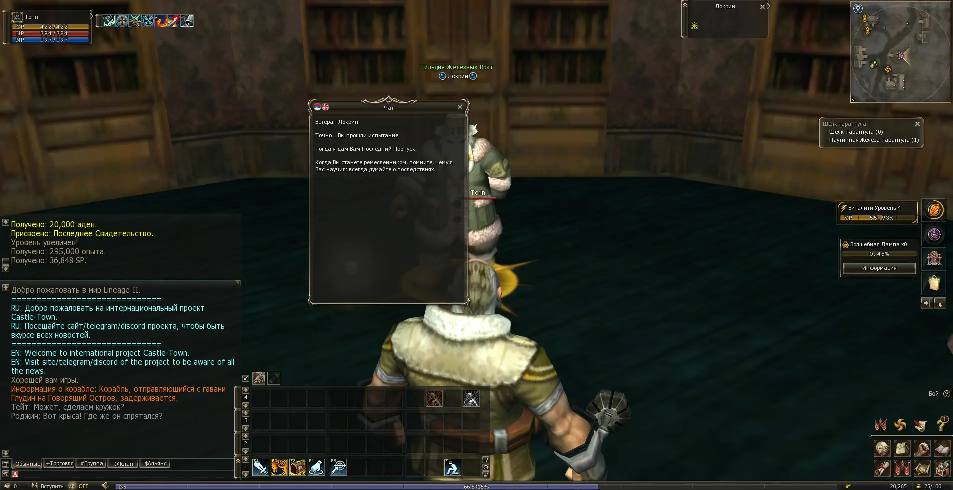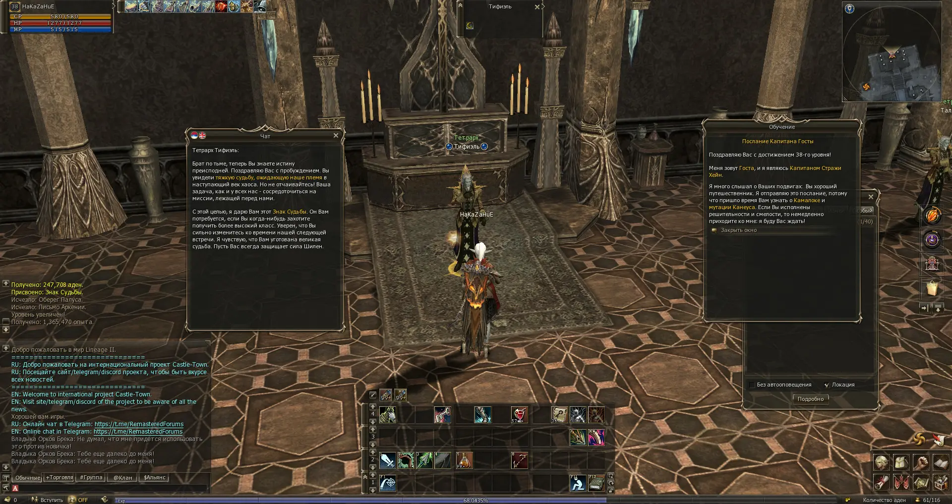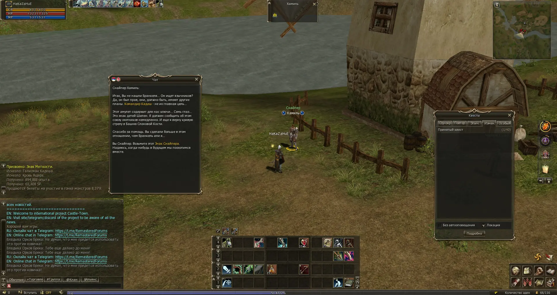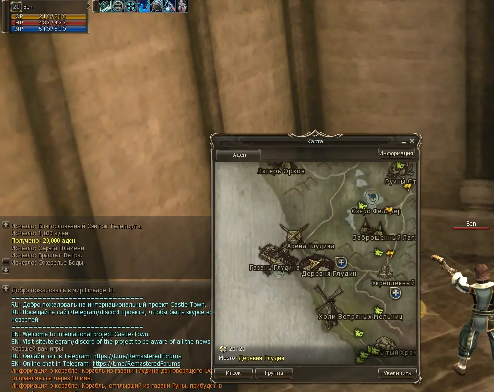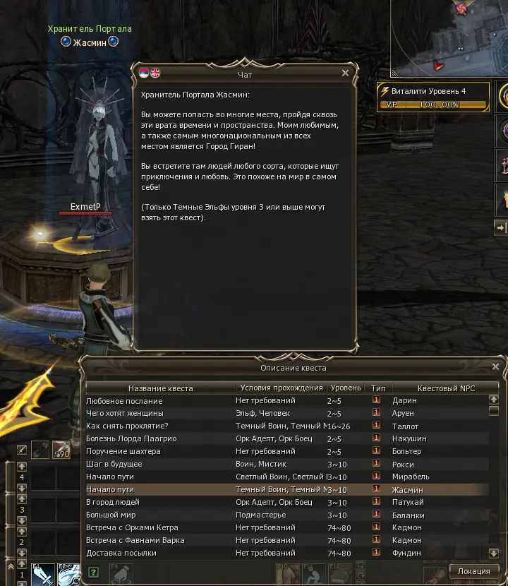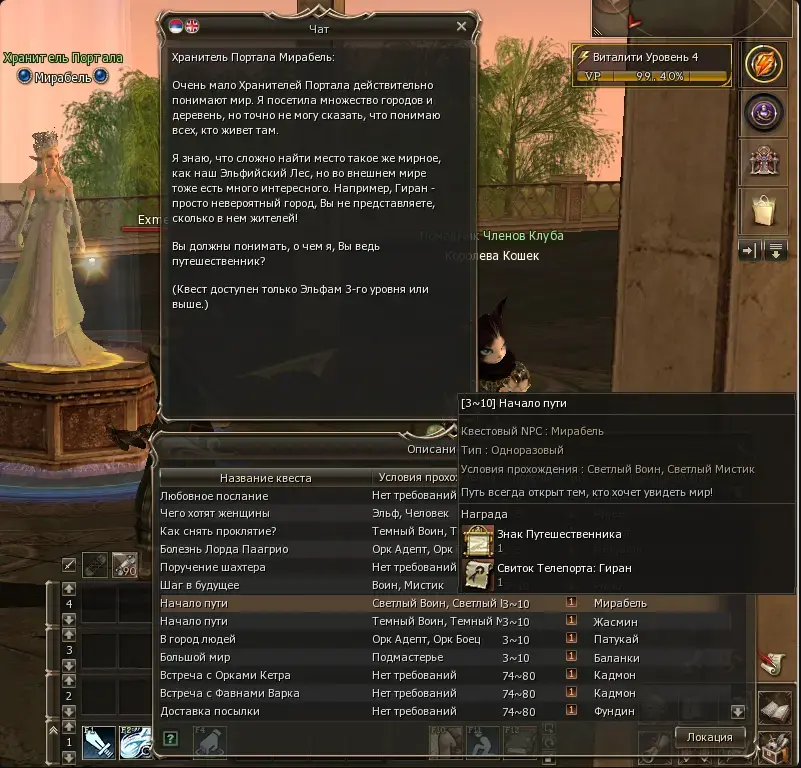 Создал персов - гнома и эльфа, появился в городе Гиране. Где начать стартовую цепочку то? И как на русский переключить язык?